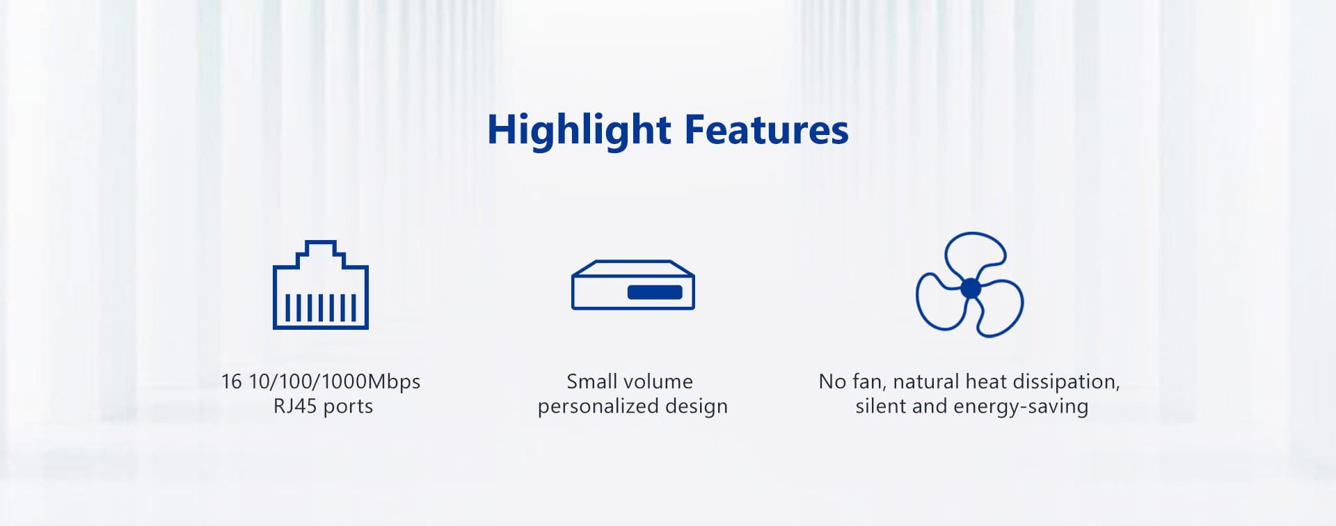 | Performance Specifications | ●Backplane bandwidth: 32Gbps (non-blocking) ●Packet forwarding rate: 23.8Mpps ●MAC address table: 8K ●Forwarding Mode: Store and Forward |