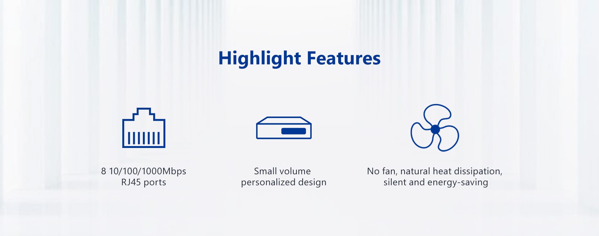 ● 8 10/100/1000Mbps RJ45 ports (Port 1~Port 8)