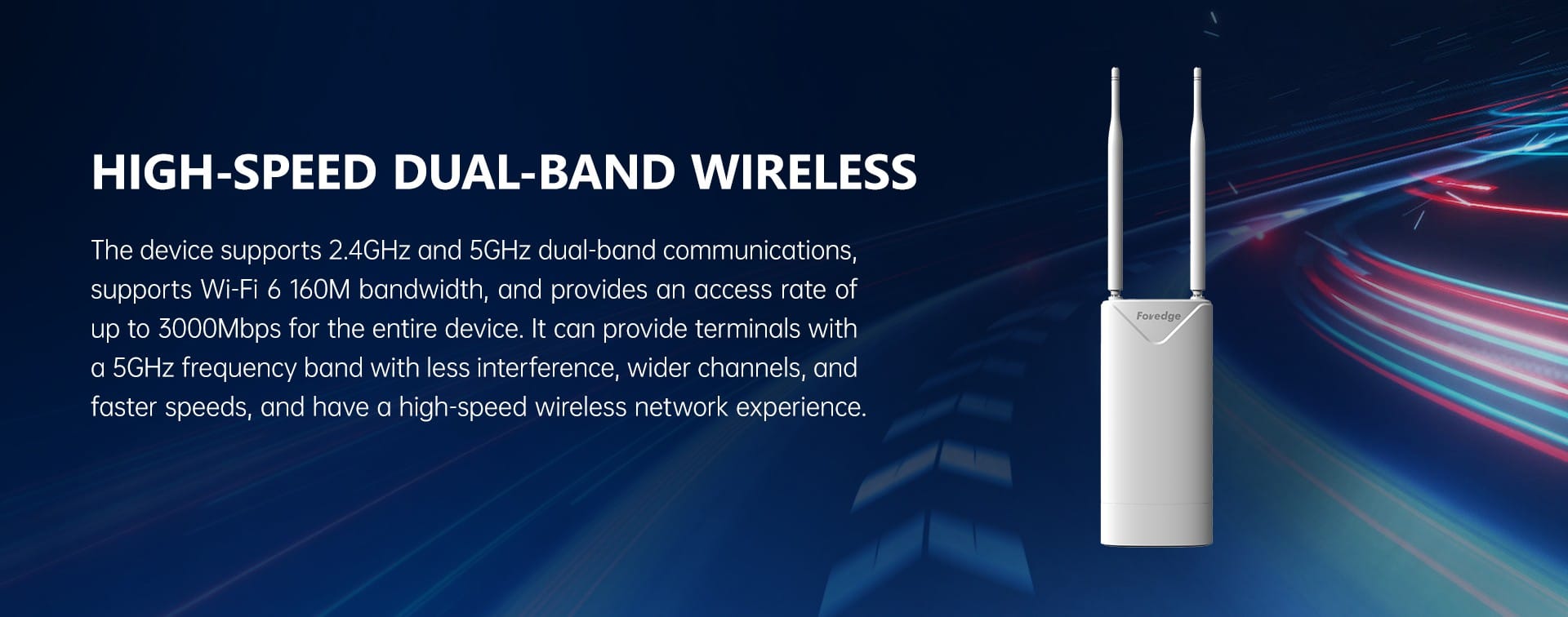 Maximum speed2.4G provides a maximum access rate of 574Mbps, and 5G provides a maximum access rate of 2402Mbps